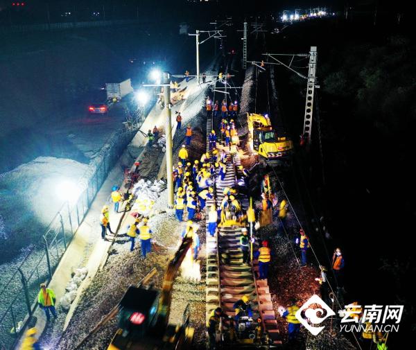 “今天晚上施工是多单位、多工种、 多工序的联合施工, 三个龙口同时进行拨接,战线长、难度大、安全风险高。” 忙碌穿梭于各施工点的王志军说,昆明局集团组织中铁三局等施工单位,结合现场实际,超前谋划,制定了应急措施和针对性的实施方案,投入大型机械9台、挖掘机12台 ,全力攻坚会战。次日凌晨4点,所有工序全部完成,线路达到运行条件。