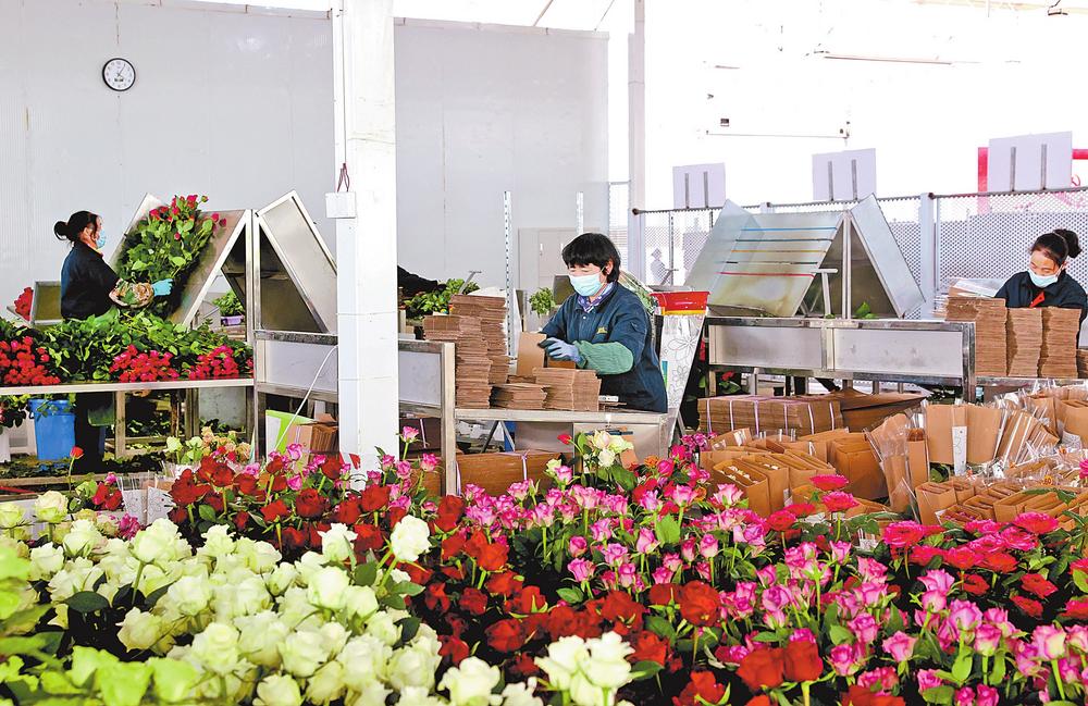 春暖花开时节,丽江现代花卉产业园里马蹄莲、玫瑰怒放。近年来,该园着力打造国内一流的种球繁育中心、高档鲜切花生产基地、东南亚高端玫瑰种植基地,目前已建成15万平方米智能温室,种植12个品种的马蹄莲17亩、20多个品种的玫瑰34亩,产品主要销往北上广等国内市场,部分销往东亚、东南亚和中亚地区。图为工人在清理玫瑰花刺。本报记者 雷桐苏 摄