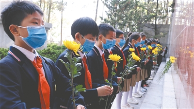 敬献鲜花。刘武俊摄