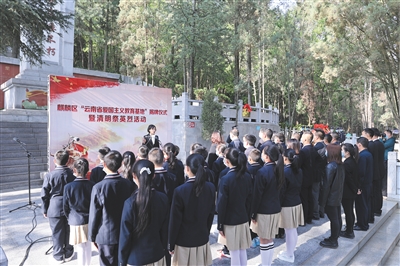 参加活动的人员整理队形完毕后,主持人宣布纪念革命先烈活动开始,全体肃立,奏唱中华人民共和国国歌。相关人员宣读《中共云南省委办公厅云南省人民政府办公厅关于命名云南省爱国主义教育基地的通知》,少先队员代表在烈士陵园烈士纪念碑前宣誓,团市委相关人员讲述革命故事。