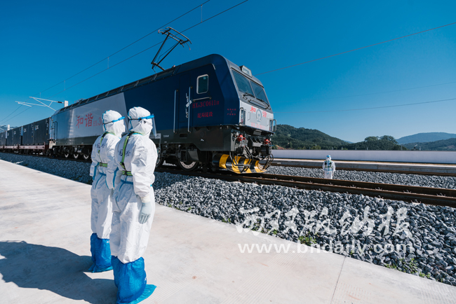 此次出境的中老国际货运班列,是3月19日12时10分从乌兰察布七苏木铁路国际物流园驶出的内蒙古开行的首趟中老铁路国际货运列车,开辟了内蒙古与东南亚国家间最快捷的国际贸易通道,较之前通过公路运输用时缩短了近一半。