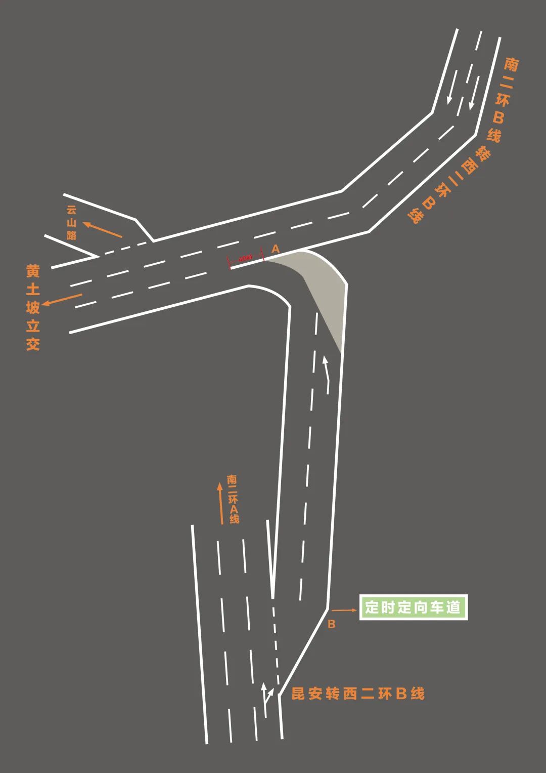 为进一步提升二环快速系统通行效率,近日,昆明市公安局交警支队十一大队将在南二环B线石虎关立交东二环右转南二环匝道交叉口、明波立交昆安高速右转西二环B线匝道交叉口两个重要流量交织点试推行新的道路通行措施。
