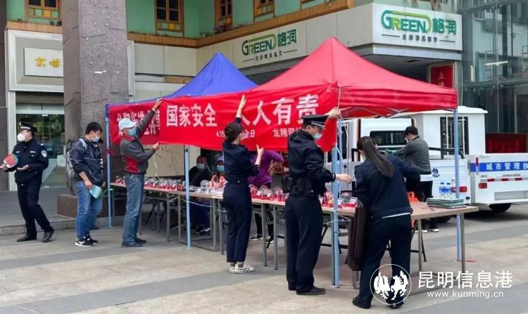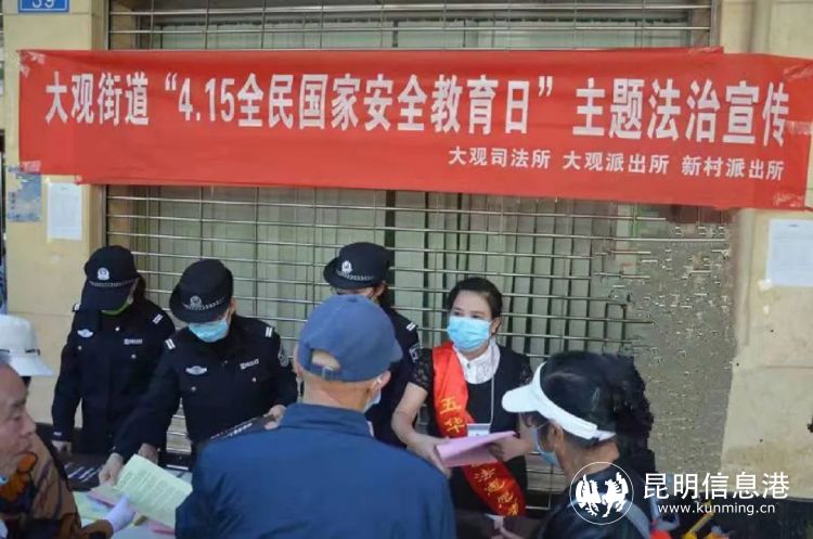 茭菱派出所联合五华区委政法委、龙翔街道办事处、龙翔司法所等部门开展“4.15”全民国家安全教育日普法宣传活动;翠湖派出所联合华山街道办事处、司法所、省政协,在翠湖公园九曲桥开展国家安全日主题宣传活动;新村派出所联合大观街道办事处在大观商业城小广场、小西门IC卡充值中心开展普法宣传活动。