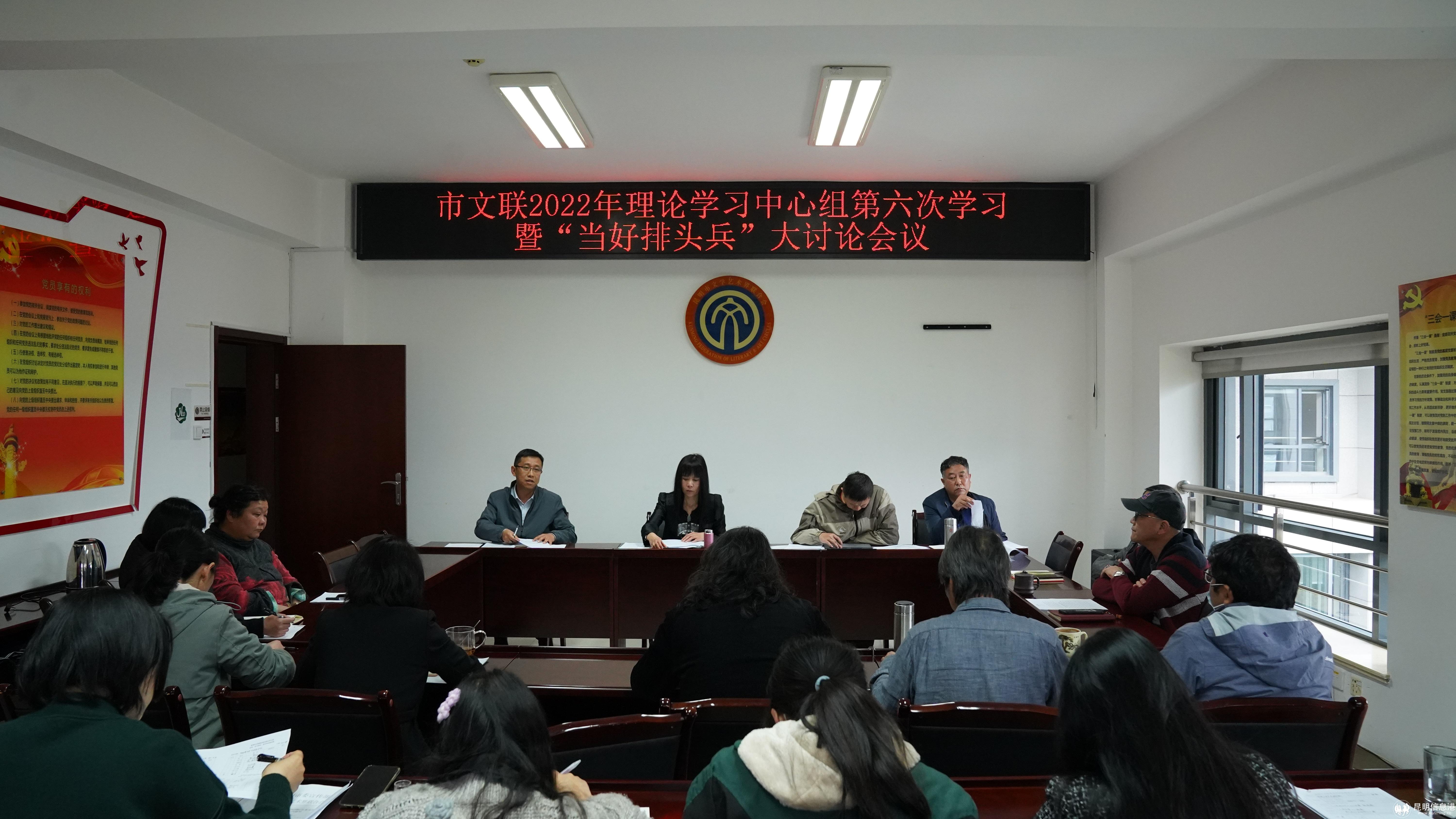 4月18日,昆明市文联组织召开2022年理论学习中心组第六次学习暨“当好排头兵”大讨论会议,旨在深入学习贯彻《昆明市推进作风革命加强机关效能建设的若干规定(试行)》和《昆明市开展“当好排头兵”大讨论大竞赛活动工作方案》精神,围绕解决好“差距怎么看、发展怎么办、工作怎么干”三个方面的问题,在学习讨论中统一思想、找准症结、提振精神,激励全市广大文艺工作者惊醒起来、振作起来、行动起来,奋力推进昆明文艺高质量发展。本次会议以集中学习、研讨发言、交流总结的形式开展,市文联党组成员、调研员、各部室和事业单位负责人做交流发言,部分党员干部职工参与谈论。