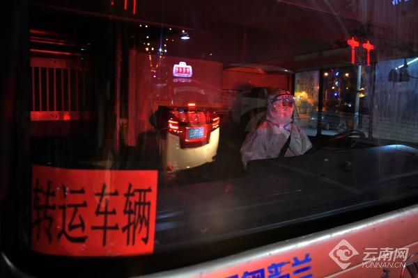 患者坐上转运车辆前往居住地