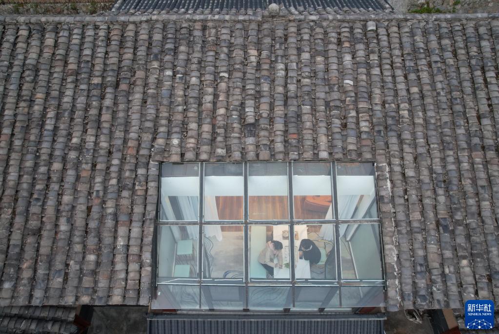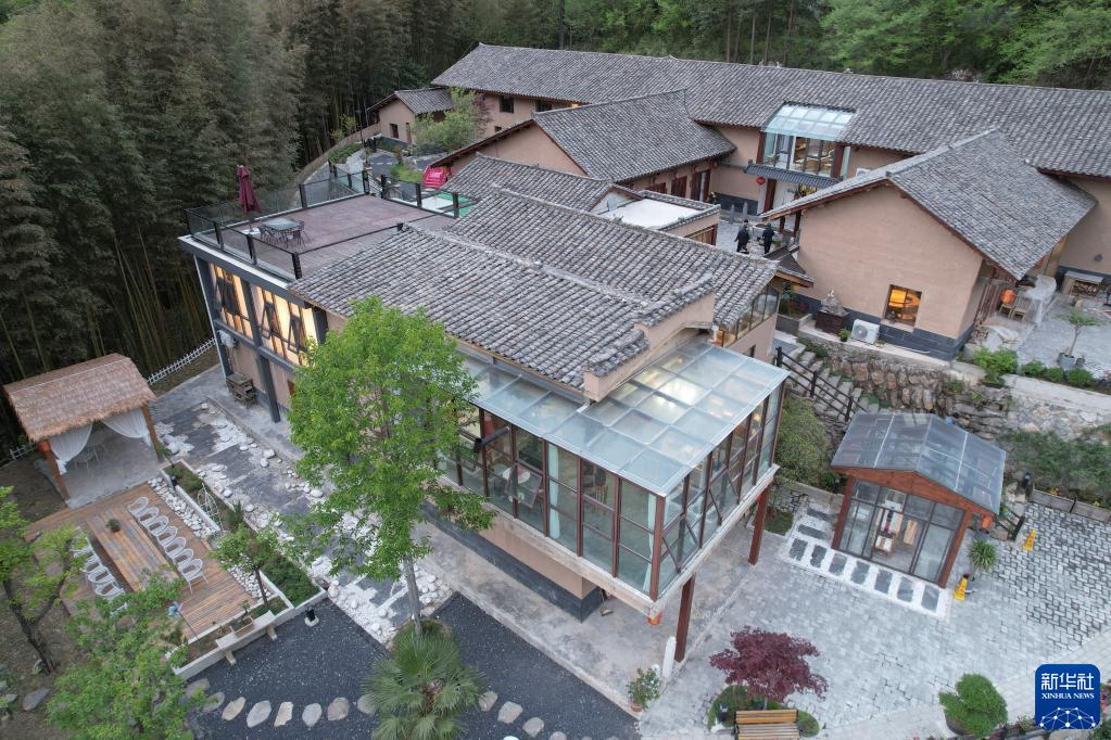 游客在佛坪县西岔河镇银厂沟村一家民宿内休息(4月19日摄,无人机照片)。新华社记者 邵瑞 摄