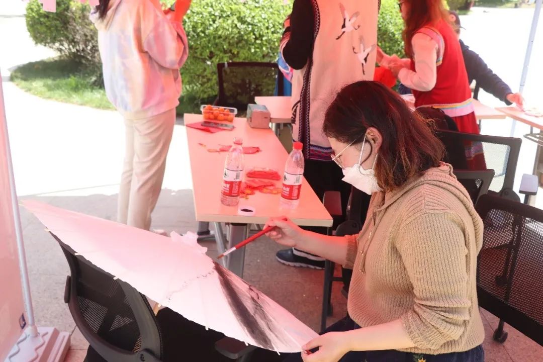 与此同时, “画纸伞”、“画脸谱”、“编中国结”、“猜灯谜”四项活动也同步进行着。