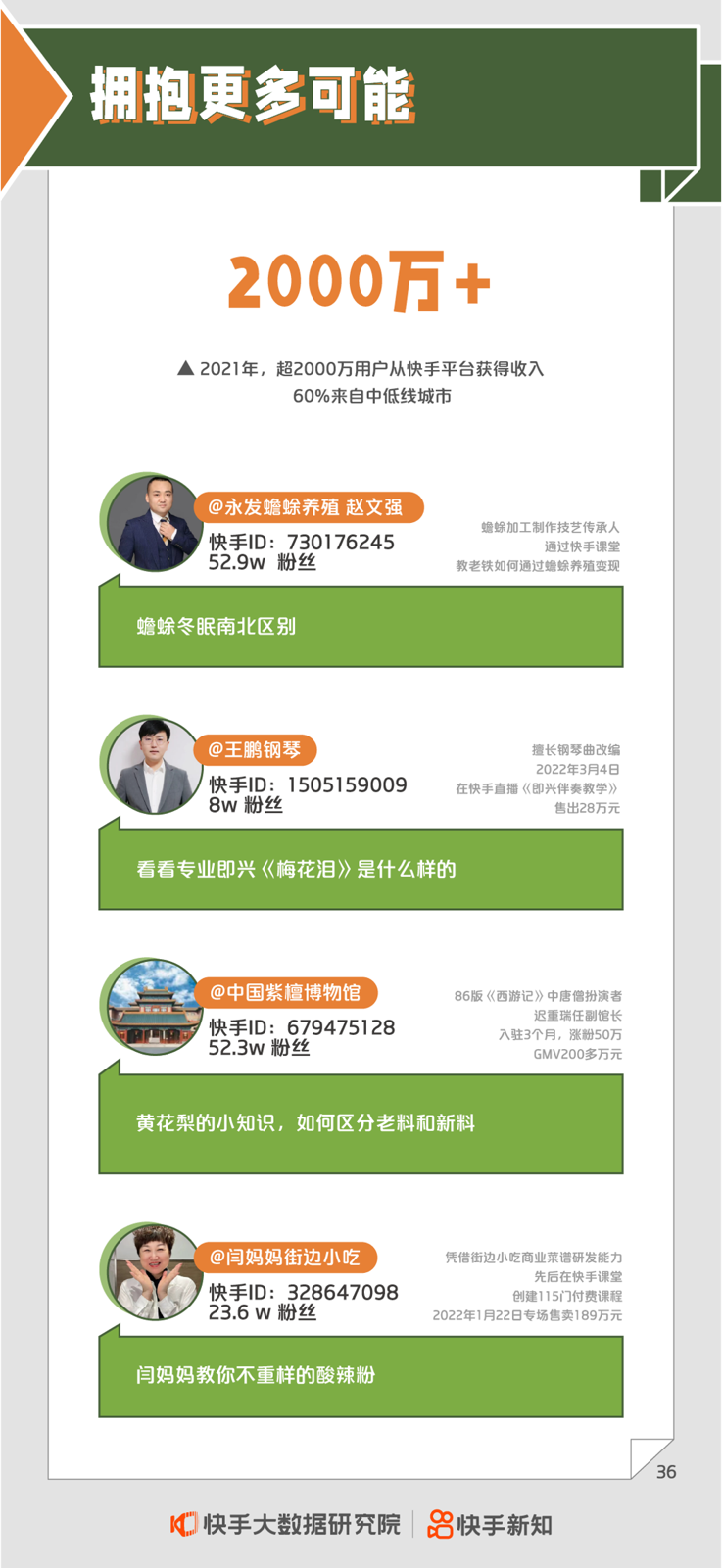 对于无数创作者来说,快手不仅仅是一个分享生活和知识的舞台,他们更能够通过持续分享来增加收入、改善生活。