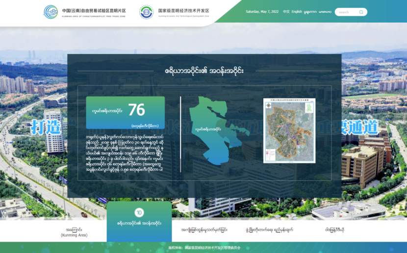 2022年5月8日,中国(云南)自贸试验区昆明片区(昆明经开区)(以下简称“自贸试验区昆明片区”)老挝语官方网站全新上线,成为全国首家开通汉语、英语、缅甸语、老挝语官方网站的自贸试验区。