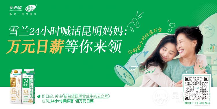 今年母亲节,新希望雪兰牛奶旗下的明星产品雪兰24小时鲜牛乳,就为昆明妈妈们准备了一份特别的妈妈专属“福利”——全昆明地区招募5位妈妈,入职雪兰担任“24小时探鲜官”,亲自来雪兰牧场探索“24小时鲜牛乳”背后的秘密,并为她们对家人的爱与用心,支付“1万元日薪”。
