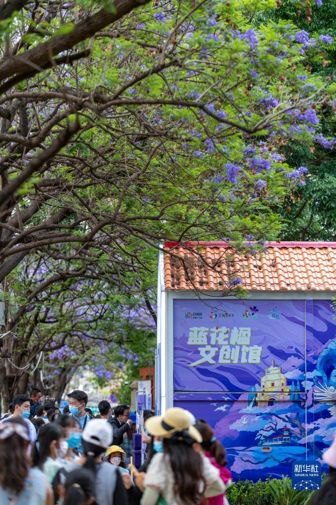 5月8日在昆明教场中路拍摄的一处蓝花楹文创馆。新华社记者 陈欣波 摄