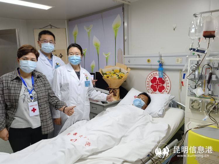 昆明信息港讯 记者李红鸾 5月11日,昆明医科大学第一附属医院血液科迎来了一位特殊的造血干细胞捐献者,因为他不仅是云南省第279例造血干细胞捐献者,同时他也是昆明医科大学第一附属医院血液科从2012年开始为中国造血干细胞捐献者资料库进行干细胞采集以来第100位志愿者。并且今天捐献造血干细胞的田先生连续12年坚持献血,累计献血次数达到138次!今天他又来捐献造血干细胞,为一名陌生的血液病患者点燃了生命重生的希望。