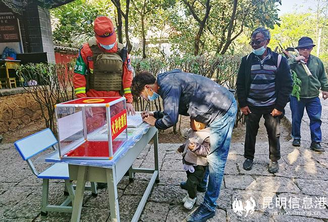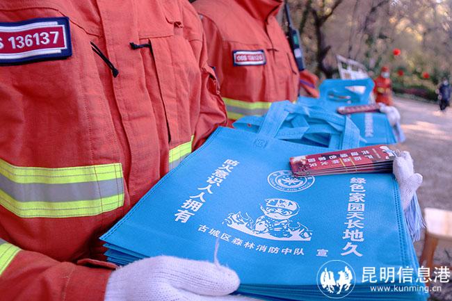 线下中队通过协调景区播放森林防火公益片、张贴防火宣传标语、发放宣传单等形式提升防火宣传效果,同时发挥中队纳西族消防员语言相通、亲和力强的优势,采取普通话和纳西语双语宣讲的形式深入社区家庭、林区乡舍、田间地头向当地群众宣传森林防火常识,不断强化驻地群众防火意识。“我们制作了森林防火环保袋、日历、特色书签、围裙等深受群众喜爱的宣传制品,解决了以往形式单一群众兴趣不高的问题,让群众在收获实惠的欣喜中潜移默化间掌握了防火常识,如今中队的特色防火宣传用品摆出来,就受到群众欢迎,很多时候不够发”,五一期间在黑龙潭北门执勤的纳西族消防员和春雷一边用纳西语提醒进山人员一边介绍到。