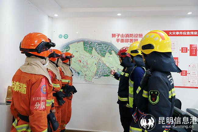 始建于乾隆年间的普济寺,位于丽江古城以西6公里的普济山麓,是省级重点文物保护单位。“普济寺后山发生森林火灾,现命你单位快速前往处置。”中队接到指令后,第一时间到达现场,迅速对火情展开侦察,主导联指快速定下战斗决心,采取森林消防队伍泵车结合扑打火头、古城束河消防救援站利用消防车消防水带固守寺庙外围、专业扑火队和景区应急队伍提供水源跟进清理的战法协力开展扑救,经过近20分钟的紧急处置,明火被成功扑灭,同样的场景在狮子山、黑龙潭、象山等重点区域曾多次上演。