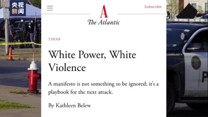 当地时间5月16日,《大西洋月刊》发表了文章《白人主义、白色暴力》。文章称,白人至上主义极端暴力分子的行为在美国获得了社会运动的背书,枪击已不是目的,而是宣传意识形态的手段。