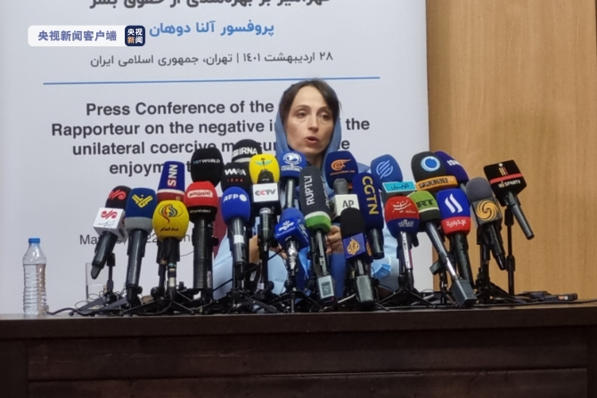 当地时间18日,联合国人权理事会单边强制措施问题特别报告员埃琳娜·窦涵在伊朗首都德黑兰举行新闻发布会,详细阐述了美国对伊朗发起的单边制裁给伊朗社会带来诸多负面影响。