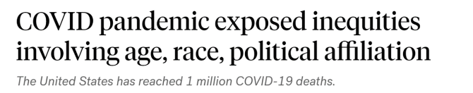 美国广播公司(ABC)新闻网站5月15日刊文称,美国新冠死亡病例数已破百万,被视为悲剧性的里程碑。在过去的两年中,新冠病毒威胁着人们的生命,对个人造成的影响也不尽相同。新冠疫情凸显出美国社会存在已久的不平等问题,暴露了因年龄、种族和政治派别不同而产生的差距。