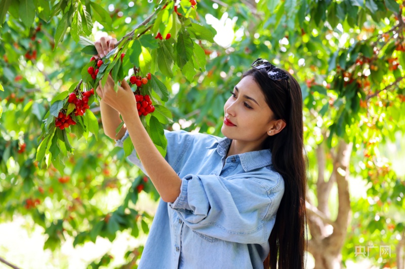 游客正在采摘樱桃(央广网发 杨林 摄)