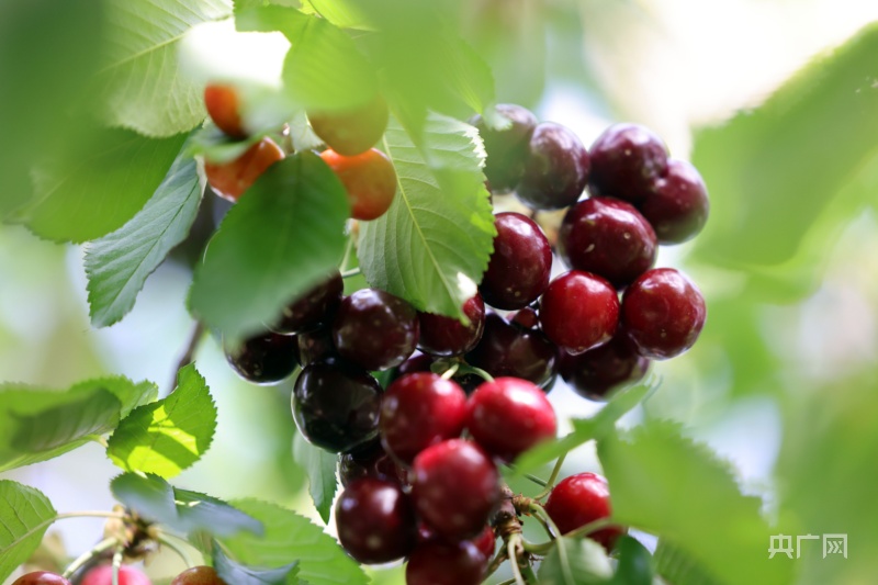 红彤彤的樱桃掩映在翠绿的枝叶间(央广网发 杨林 摄)