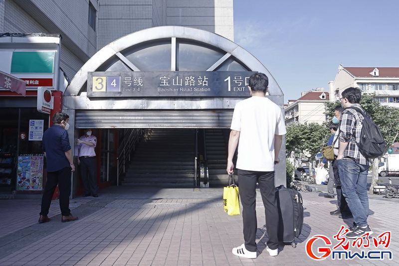 2022年5月22日,市民在上海轨道交通3号线宝山路站等待进站。当日,上海轨道交通四条地铁线路107座车站恢复运营。(殷立勤摄/光明图片/视觉中国)