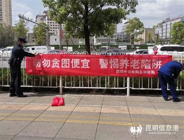 五华警方提示:各位老年朋友一定要提高警惕,防止落入诈骗圈套,当个人权益受到侵害时,第一时间向公安机关报案。(昆明信息港 记者合宇聪)