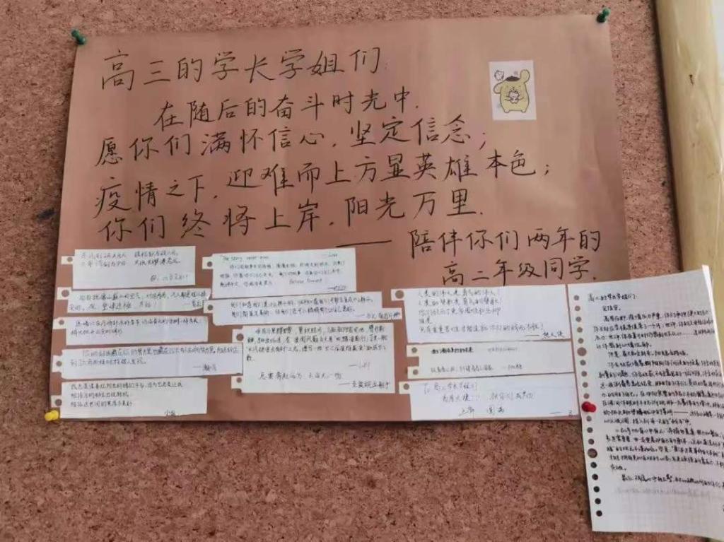 长郡中学高二学生给高三的师兄师姐送上考前祝福。(受访者供图)