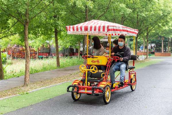 市民张女士是朱泾镇居民,看到开园信息发布后,她就着手准备了起来,逛了超市,买了适合速食的食品,预备在园区里“泡”上一天。“提前预约好过来,入口这测温扫码购票,挺快的,也就比平时多花个2、3分钟,孩子已经儿童乐园疯玩一圈了,现在去找块绿地搭个帐篷休息会儿,有点小雨,但不影响心情。”