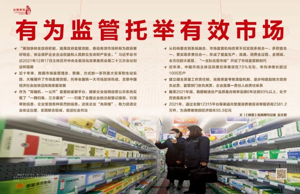 近十年来,市场监管由事后监管转变为事中、事后监管,关口前移提升监管效能;通过调整政府机构成立市场监管总局,形成大市场、大监管格局;逐步理顺市场监管队伍和监管链条,实现“一支队伍管市场”;以有效市场监管促营商环境改善,助力培育高质量的活跃市场主体,近10年中国净增1亿户市场主体;降低市场准入门槛和制度性交易成本,深入开展质量提升行动,营造放心消费环境……市场监管理念、思路、方式的一系列重大变革和生动实践,大幅提升了我国的市场监管效能,支撑着中国经济社会加快迈向高质量发展。