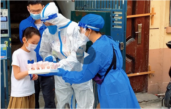 看着核酸队伍中,他们排队、摘口罩、张口、拿免洗手液等一系列娴熟的动作,我们略为心酸。现在志愿者叔叔阿姨哥哥姐姐们,特意为他们准备了一点点小礼物,希望能给他们带来快乐。