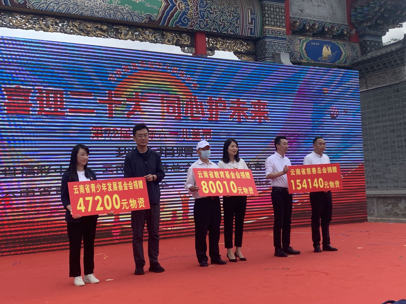 活动现场,云南省慈善总会、云南省教育基金会和云南省青少年发展基金会向官渡区捐赠近30万元儿童物资,包括书包、书籍、体育用品等等。吴玉荣副厅长、马郡局长向儿童代表现场发放了物资。