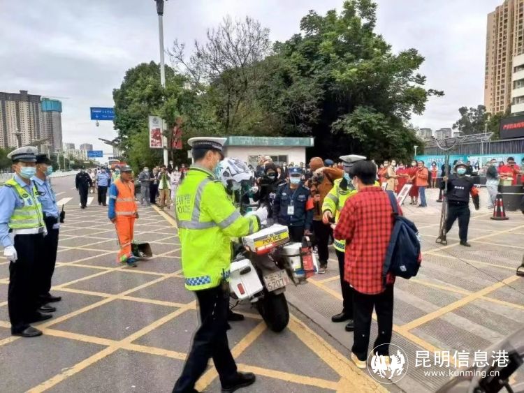 西山公安联合交警部门根据现场情况,开辟临时停车场地和停车泊位,增派警力加强交通疏导,必要时采取间隙性交通管制或临时改道等措施,确保考生和有关人员进出考点交通畅通。同时,针对考试期间可能出现的轻微交通事故、拥堵等情况,及时发现、处早处小。