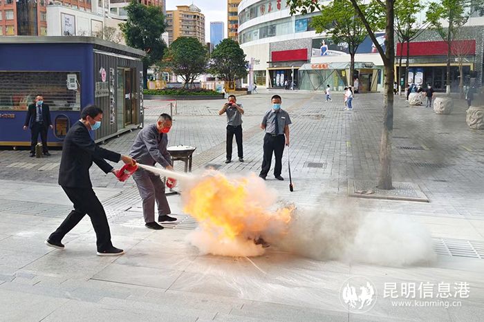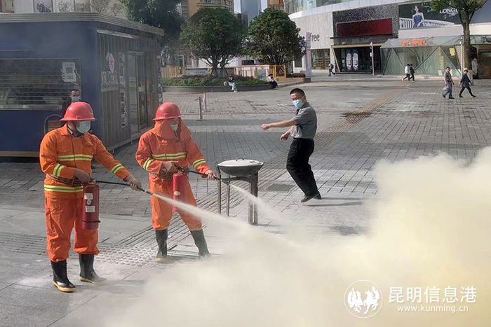 昆明信息港讯 记者曹月 今年6月是全国第21个“安全生产月”,为增强景星社区辖区居民消防安全意识,普及消防安全知识,6月10日,景星街社区和辖区内的百大新天地联合开展消防安全应急演练。