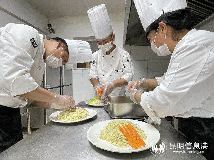 昆明信息港讯 记者龙泉积 麻婆豆腐、青椒银芽肉丝、柠檬黄瓜、三色冷拼......一盘盘美味的菜肴,让人大快朵颐。6月10日,在官渡区关上街道双凤社区举行的外来务工人员烹饪比赛现场,外来务工人员中的“厨艺大师”们纷纷拿出看家本领,比拼厨艺。