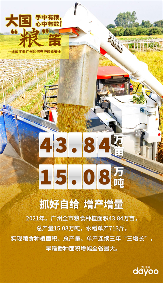“粮食安全是‘国之大者’。悠悠万事,吃饭为大。”作为常住人口超1800万人的超大城市,又有“食在广州”的美名,广州对待吃饭问题从不敢松懈。2463.49万吨粮食供给量、116万亩高标准农田、575个粮食应急网点……让我们通过这些数字,看广州如何守护粮食安全。