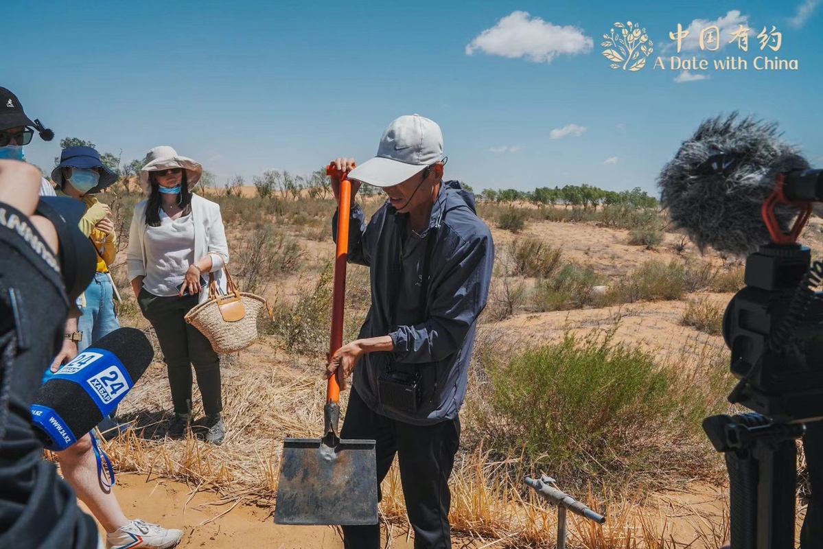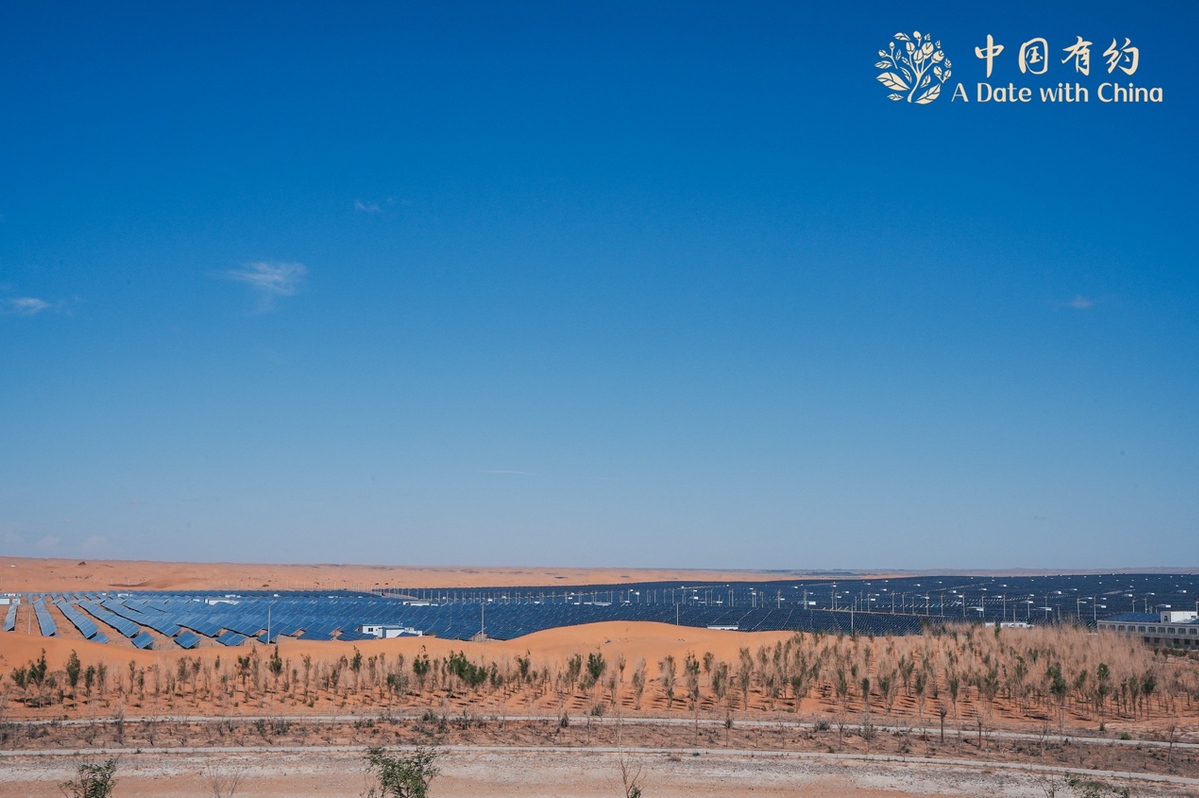 在腾格里沙漠边缘,整齐排列的光伏板组件像向日葵一样追逐好“风光“。不仅绿了生态,也富了口袋。这是“2022中国有约 A Date with China”国际媒体主题采访团来到中卫沙漠光伏园区所看到的沙漠治理新图景。
