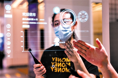 工作人员在国家大数据(贵州)综合试验区展示中心内使用智能家居的智能镜子。新华社记者 欧东衢 摄