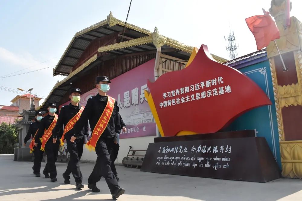 坚持把深入学习宣传贯彻习近平法治思想作为全民普法工作的首要任务,将其贯穿到普法工作全过程、各方面。图为瑞丽边检站民警在地处“一寨两国”的德宏州瑞丽市姐相乡银井村普法。