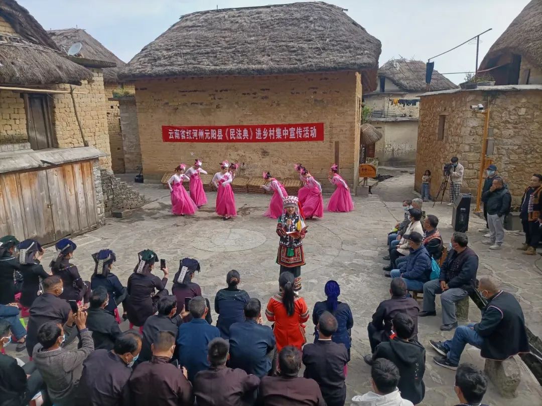 大力开展形式多样的民法典宣传活动,切实推动民法典实施,让民法典真正融入百姓生活,成为人民群众的真诚信仰。图为红河州元阳县开展民法典进乡村活动。