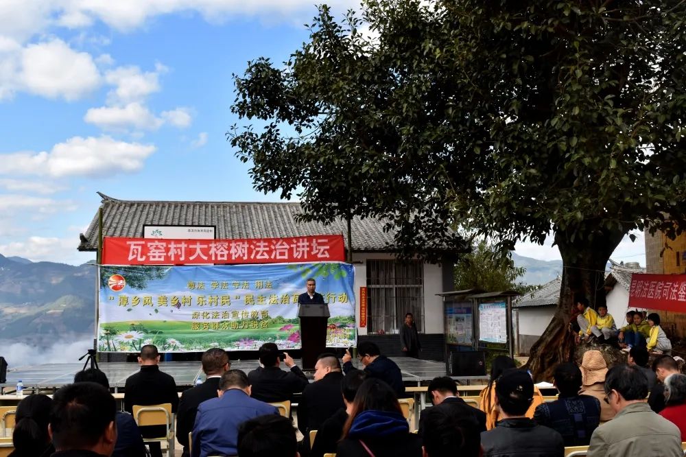 2018年12月1日,云南省司法厅在挂钩扶贫点普洱市景东县瓦窑村开展“大榕树法治讲坛”助力脱贫攻坚活动。以“淳乡风、美乡村、乐村民”为载体,瓦窑村成功创建为“全国民主法治示范村”。