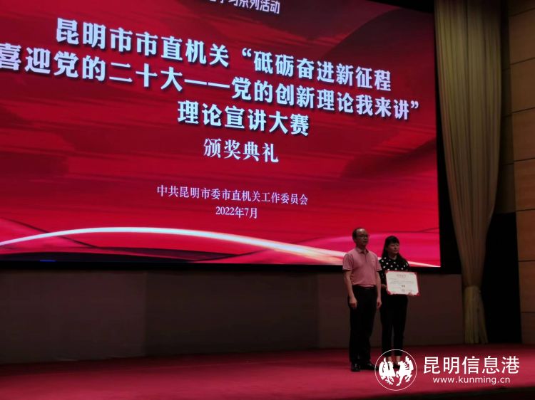 据介绍,昆明市市直机关自启动“党的创新理论我来讲”理论宣讲活动以来,通过积极组织和参赛,让党的创新理论在市直机关深入人心、凝聚力量,为迎接党的二十大营造了良好氛围。