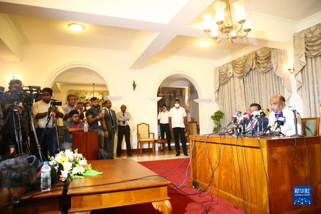 7月15日,斯里兰卡议长阿贝瓦德纳(右一)在科伦坡出席新闻发布会。新华社记者 车宏亮 摄