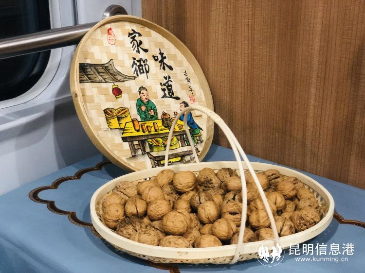 车厢里还陈列着很多大保铁路列车特有的文创产品,如“我和保山有个约定”便签本、主题书签、保山咖啡钥匙扣、云南产的咖啡、茶、竹制品等。列车员介绍,列车正式开通之后这些特色文创产品都会成为商品,供乘客选购。