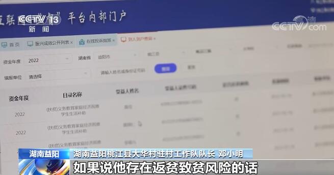 湖南益阳桃江县大华村驻村工作队队长 邓小明:我们收到风险预警信息之后,如果(确定)他存在返贫致贫风险,我们将上报纳入监测系统,进行针对性帮扶。