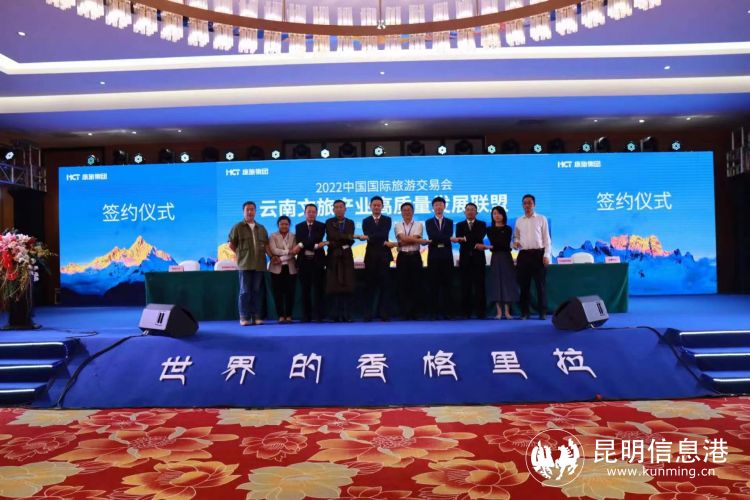 昆明信息港讯 记者昝娟娟 以2022年中国国际旅游交易会举办为契机,7月23日上午,“世界的香格里拉”专场推介会上,“云南文旅产业高质量发展联盟”成立,10家联盟成员单位签署了战略合作协议,并发布了成立宣言。