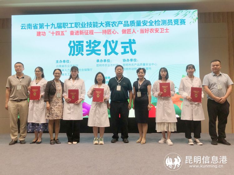 昆明信息港讯 记者邱丽君 经过三天的激烈角逐,云南省第十九届职工职业技能大赛农产品质量安全检测员竞赛活动7月28日圆满落幕。全省16支代表队56名选手在竞赛期间展示了较高的专业素养、良好的精神风貌和精湛的检测技能。昆明市在本次竞赛中取得骄人战绩,4名参赛选手,3名获奖,昆明市农业农村局张任华获得“云南省农产品质量安全检测员技术状元”称号。