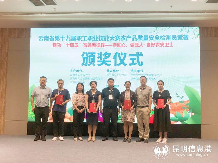 在此次比赛中,昆明市充分展示了农产品质量安全检测水平和能力,昆明市农业农村局张任华获得“云南省农产品质量安全检测员技术状元”称号,昆明市农业农村局贺玲、李惠琼获得“云南省农产品质量安全检测员技术能手”称号,昆明市农业农村局获得“优秀组织奖”。