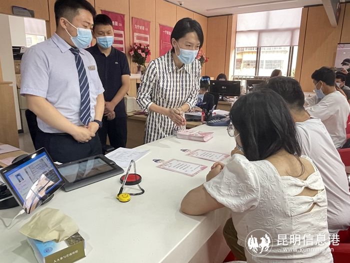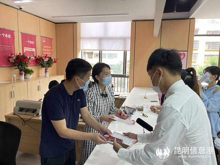 现场,在神圣庄严的婚姻登记窗口,五华区妇联为新婚夫妇送上新婚祝福,准备充满“仪式感”的幸福纪念卡片,邀请新婚夫妇签上自己的姓名,共同盖上“爱心印章”。祝愿每一对新人共沐爱河、共担风雨,相濡以沫、相守一生。
