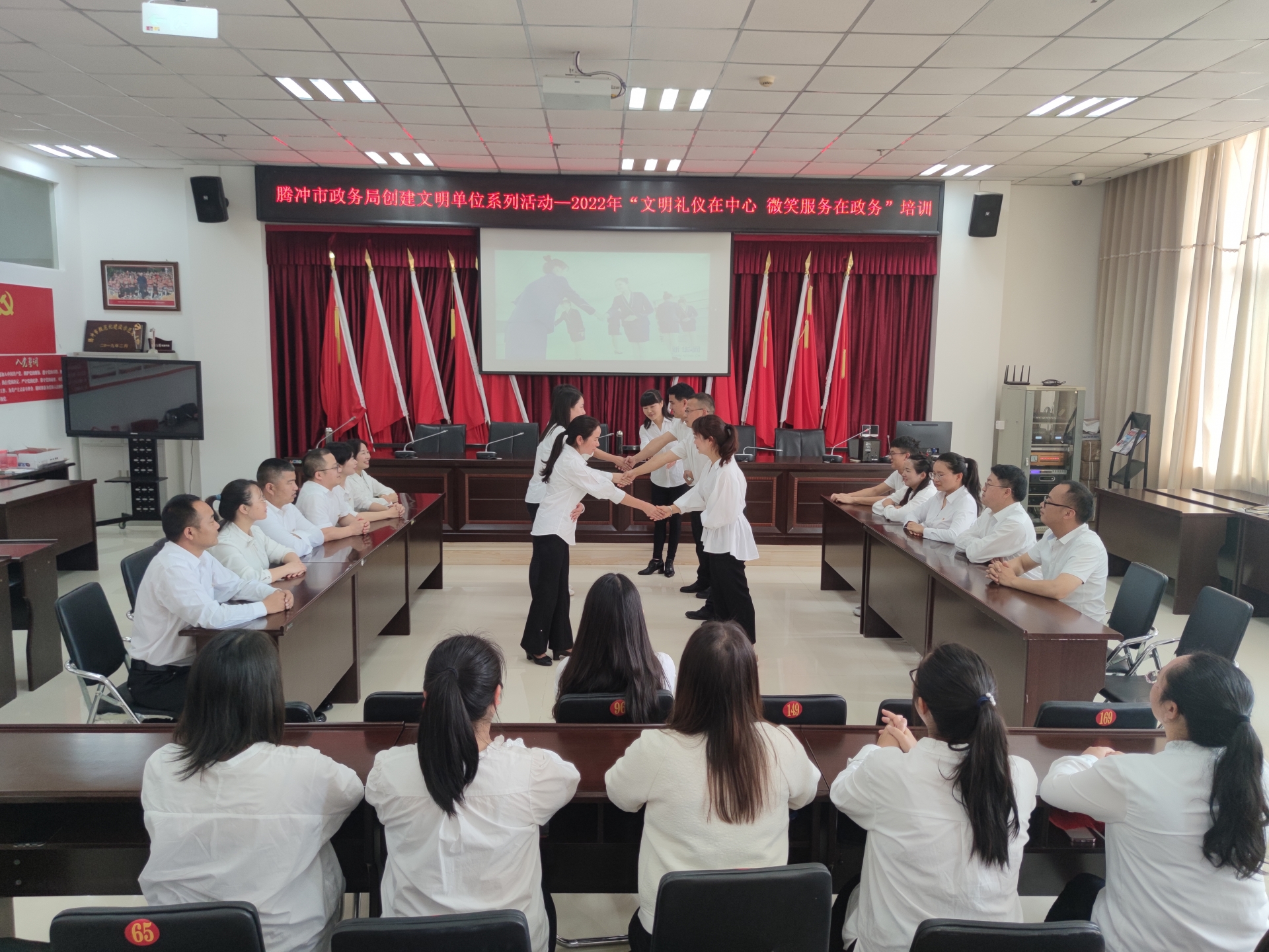 “微笑服务就是要对办事群众做到‘笑脸向、起身迎、主动问、一口答、马上办’,让每一位前来办事的群众都能感受到家一样的温暖。”腾冲市政务局党组书记、局长张丽芝在培训会上要求道。