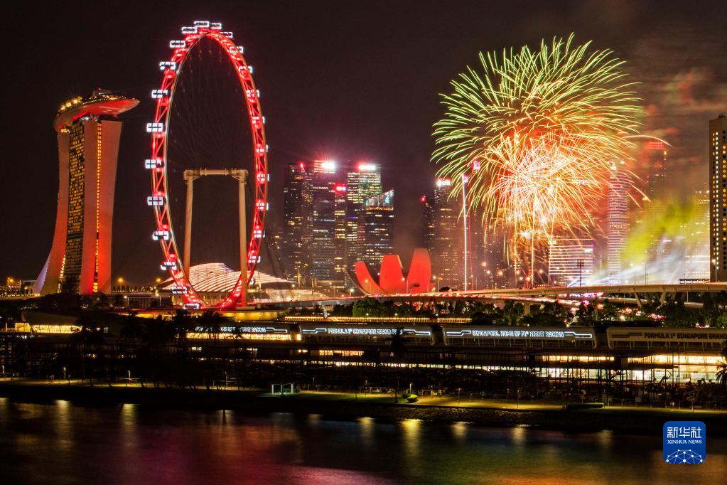 8月9日,新加坡滨海湾举行的国庆庆典上烟花绽放。