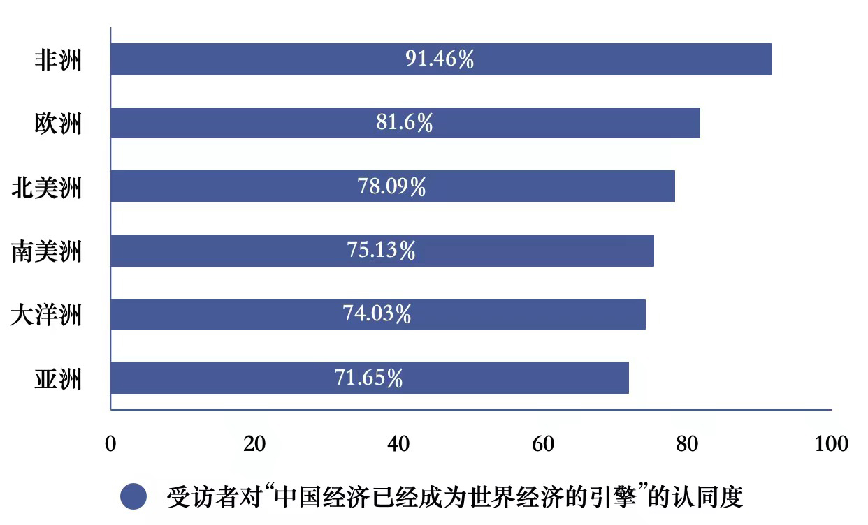 △各大洲受访者对“中国经济已经成为世界经济的引擎”的认同度